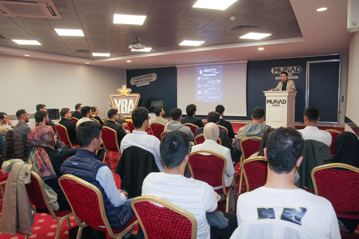 Programın açılış konuşmasını yapan Genç MÜSİAD Bursa Şube Başkanı Süleyman Mesih Çil, YBA'nın sadece bir eğitim programı olmadığını belirterek, 'Biz inanıyoruz ki; bilgiyle donanmış, değerleriyle barışık, üretmeye ve sorumluluk almaya istekli bir gençlik, bu ülkenin en büyük gücüdür. YBA Projesi tam da bu inançla doğdu. Amacımız, alanında uzman isimlerle siz gençleri bir araya getirerek, sadece akademik bilgi değil; hayat bakışı, liderlik anlayışı ve girişimcilik ruhu kazandırmak. Unutmayın; hedefleri olan bir gencin önünde hiçbir engel duramaz. Biz Genç MÜSİAD olarak her zaman sizin yanınızdayız' diyerek gençlere seslendi.