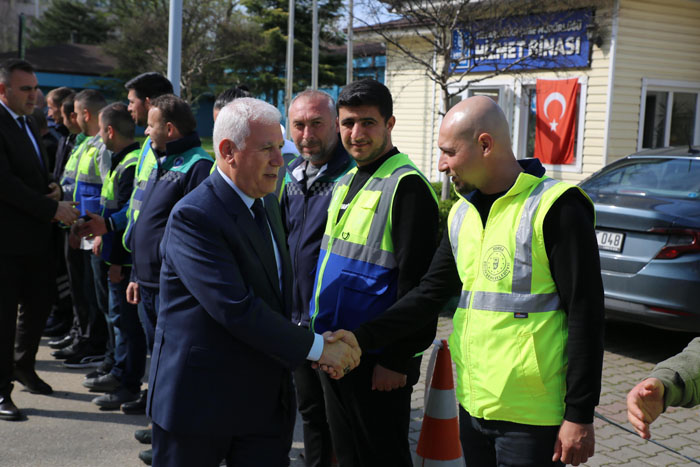 Çalışma arkadaşlarımızın özverileri sayesinde önemli hizmetlerimiz oldu. Ben tüm arkadaşlarımıza çok teşekkür ediyorum" diye konuştu. Bayramda ulaşımın ücretsiz olduğunu da hatırlatan Başkan Mustafa Bozbey, "Şu anda ulaşım sistemimiz ücretsiz. Vatandaşlarımız bir yerden bir yere rahatlıkla gitsinler ve yakınlarına kolayca ulaşarak bayramlaşsınlar istiyoruz. Sizlerin sayesinde hemşehrilerimiz daha huzurla, daha güvenle ziyaretlerini gerçekleştirip evlerine dönmüş olacaklar" ifadelerini kullandı.