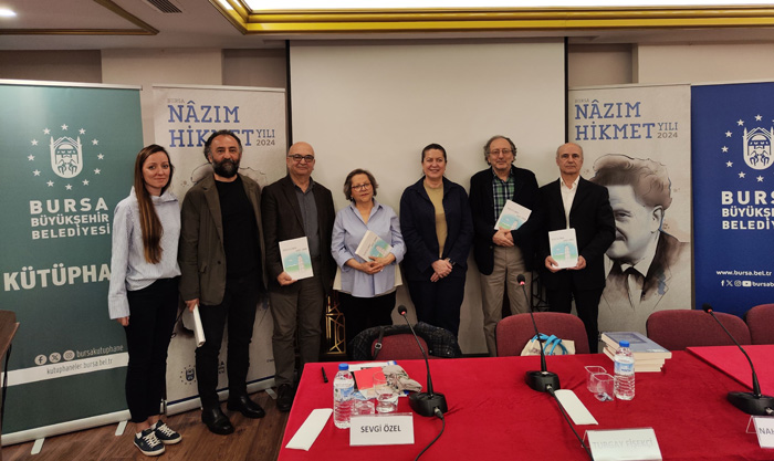 Dünya ve Türk edebiyatına sayısız eserler kazandıran şair ve yazar Nâzım Hikmet, Bursa Büyükşehir Belediyesi tarafından düzenlenen 'Nâzım Hikmet Yılı' etkinlikleriyle anılıyor. Tayyare Kültür Merkezi'nde Nahit Kayabaşı'nın yöneticiliğinde düzenlenen programda, Sevgi Özel 'Putları Yıkan Şairimiz Nâzım Hikmet', Turgay Fişekçi 'Çizgilerle Nâzım Hikmet', Göksel Aymaz 'Bir Ulu Irmak' ve Atilla Birkiye 'Bulutlar Piraye Piraye Diye Geçiyor' ile 'Şair İstanbul'daydı' adlı kitaplarının oluşum serüvenini anlattı.