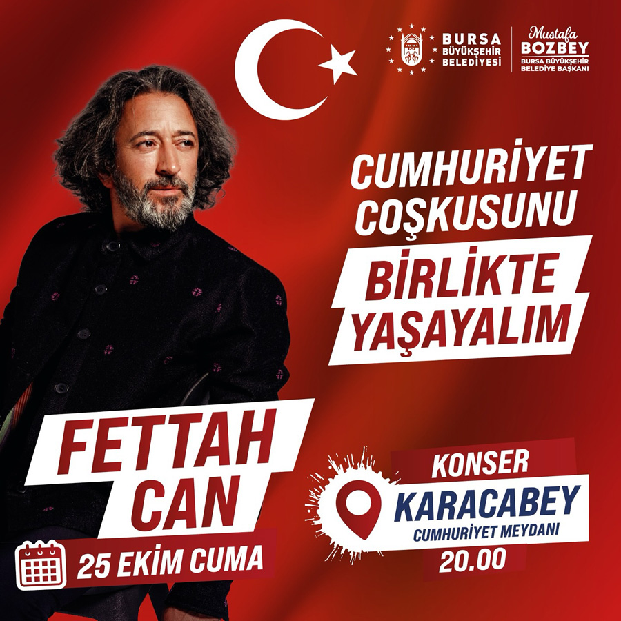 Etkinlikler kapsamında ilk olarak 25 Ekim Cuma günü Bursalı sanatçı Fettah Can, Karacabey ilçesi Cumhuriyet Meydanı'nda sahne alıyor. 26 Ekim Cumartesi günü usta sanatçı Erol Evgin, İnegöl ilçesi nikah salonu önünde Bursalılar için en sevilen şarkılarını seslendirecek. 27 Ekim Pazar günü ise Yıldırım ilçesi eski İhtisas Hastane alanında ünlü sanatçı Haluk Levent rüzgarı esecek. 28 Ekim Pazartesi günü ise Merinos Atatürk Kongre Kültür Merkezi'nde Arpanatolıa-Bursa Bölge Devlet Senfoni Orkestrası konseri ile Gemlik ilçesi İskele Meydanı'nda Ali Altay konseri düzenlenecek.