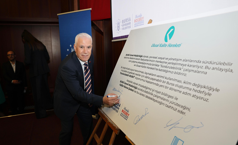 BUSKİ Konferans Salonu'ndaki programda konuşan Büyükşehir Belediye Başkanı Mustafa Bozbey, EFQM Mükemmellik Modeli yolculuğunun 2002 yılında Nilüfer Belediye Başkanlığı döneminde başladığını hatırlattı. Bireysel yaşamda ve kurum kültüründe ne kadar etkili olduğunu yakından bildiğini anlatan Başkan Mustafa Bozbey, tüm kurumları sürekli iyileştirme ve mükemmele ulaştırma hedefi taşıdıklarını anlattı. Tüm birimlerde her alanda 'kalite ve sürdürülebilirlik' anlayışının kök salmasını istediklerini belirten Başkan Mustafa Bozbey, "Bu imzayla birlikte BUSKİ Genel Müdürlüğümüzde de kurumsal olgunluk seviyesini belirleme süreci başlayacak. Ardından güçlü yönlerimizi göreceğiz. İyileştirilmesi gereken alanlarda ise bir yol haritası oluşturacağız. Bugün burada BUSKİ'nin kurumsal ve sürdürülebilir dönüşümünde yeni bir eşiği, yeni bir kilometre taşını hep birlikte yerleştiriyoruz" dedi.