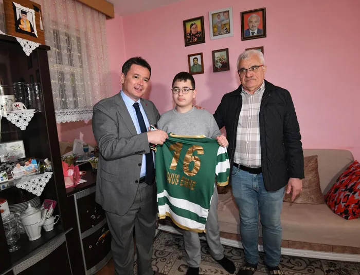 İstiklal Mahallesi'nde yaşayan otizmli Yunus Emre Erdem, vatandaş ile belediye arasında iletişim köprüsü olan Osmangazi Çağrı Merkezi'ni arayarak Osmangazi Belediye Başkanı Erkan Aydın'dan doğum günü için Bursaspor forması talep etti. Çağrı merkezine ulaşan bu anlamlı istek üzerine harekete geçen Başkan Erkan Aydın, İstiklal Mahalle Muhtarı Mümin Gözyılmaz ile birlikte Yunus Emre'yi evinde ziyaret ederek gönülleri ısıtan bir sürprize imza attı.