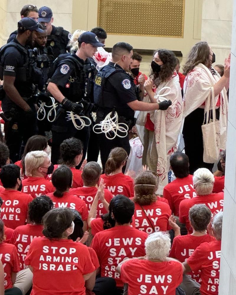 Polisin barışçıl gösteriyi sonlandırma çağrısına uymayan grubun üyeleri plastik kelepçe takılarak gözaltına alınırken, Capitol Polisi'nden yapılan açıklamada gösterinin "yasadışı" olduğu belirtildi. Açıklamada 'Kongre binalarında gösteri yapılmasına izin verilmiyor. Yasal olarak içeri girenlere gösteriyi sonlandırmalarını, yoksa tutuklanacaklarını söyledik. Durmadılar, biz de onları tutukluyoruz" ifadeleri kullanıldı. Gözaltı sayısına dair kesin bilgi verilmezken, JVP'den yapılan açıklamada ise 300'ü aşkın göstericinin gözaltına alındığı belirtildi.
