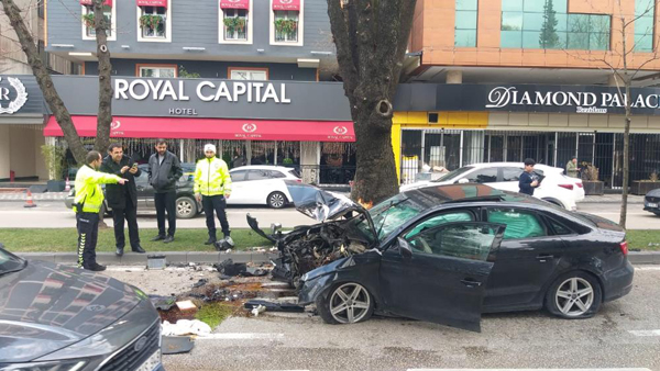 Aşırı hız yaptığı iddia edilen kadın sürücü, aracının direksiyon hakimiyetini kaybedince ağaca çarptı. Bursa’nın Çekirge Caddesi’ndeki kazada otomobilin önün parçalanırken, şoför hastaneye kaldırıldı.
