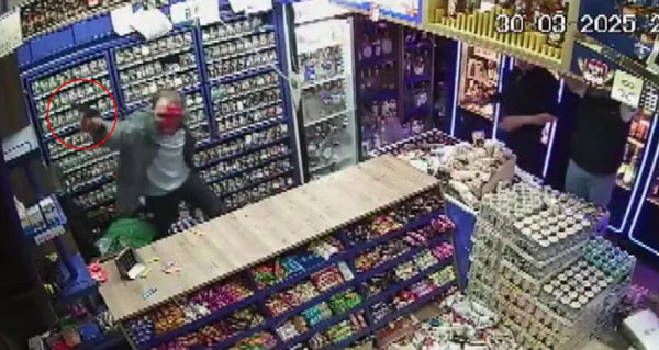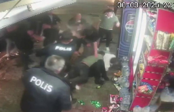 Görüntülerin devamında öfkeli grubun tekme, tokat ve dükkan içerisindeki malzemeler ile iki kişiyi öldüresiye darbettiği anlar görüldü. Kanlar içerisinde kalan emekli polisin kurtulmak için silahı ile ateş açtığı esnada bir kişinin üzerine atladığı da görüldü. Polis ekipleri olayı biber gazı sıkarak güçlükle ayırdı.