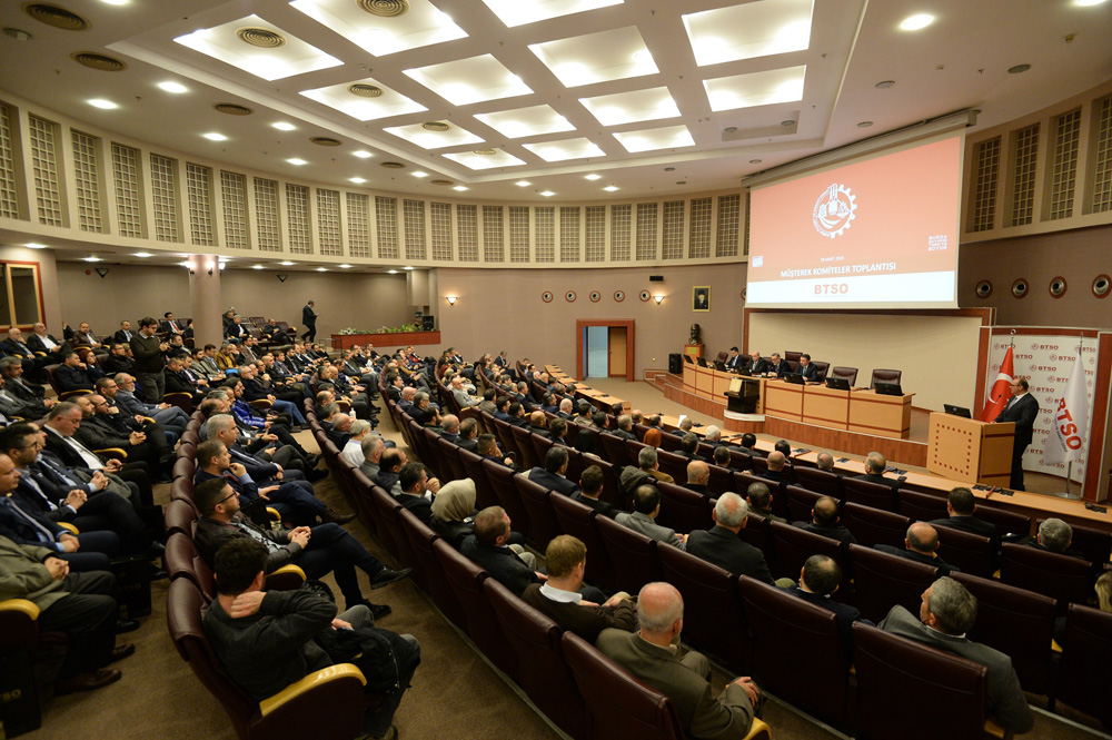 Oda Hizmet Binası’nda düzenlenen Müşterek Komiteler ve Mart Ayı Meclis Toplantısı’nda konuşan Başkan Burkay, BTSO’nun Türkiye’nin en büyük ve en köklü sivil toplum kuruluşları arasında olduğunu söyledi. BTSO çatısı altında görev alan ve sorumluluk üstlenen her bir üyenin, sadece kentin değil, ülke ekonomisinin dönüşümünde de kilit rol oynayan tarihi projelerde önemli paya sahip olduğunu ifade eden Burkay, “Komite ve meclis üyelerimizin katkılarıyla Bursa’mızı ortak akılla daha güçlü bir geleceğe taşımak için azimle çalışmayı sürdürüyoruz” dedi.