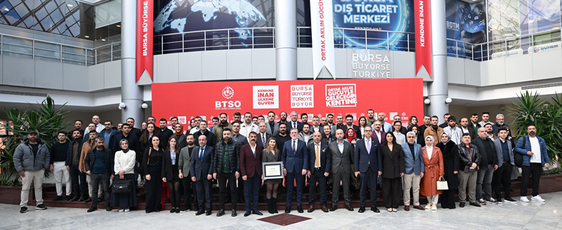 BTSO Yönetim Kurulu Başkanı İbrahim Burkay, dünyada teknoloji odaklı büyük bir değişimin yaşandığını belirterek, yapay zekâ, dijital dönüşüm, e-ticaret ve yeşil dönüşüm yeni dönemin belirleyici alanları olduğunu dile getirdi. Başkan Burkay, “İşte bu yüzden, ihtiyaç duyduğunuz her konuda eğitimler, gelişim programları ve destek mekanizmaları oluşturuyoruz. Sizlerin dünyayla rekabet eder hale gelmesi için her türlü altyapıyı hazırlıyoruz. Ticarette dijital platformlar geliştiriyoruz, dış ticareti büyüten modelleri hayata geçiriyoruz. Bursa Business School ile üyelerimizin yaşam boyu eğitim yolculuğunu destekliyoruz. BTSO Akademi ile iş dünyamıza geniş bir gelişim imkânı sunuyoruz. Nitelikli istihdam için BUTGEM ve MESYEB gibi çok değerli yapılarımızla hizmet sunuyoruz. BUTEKOM, ULUTEK ve teknoparkımızla üniversite–sanayi iş birliğini büyütüyor, inovasyonu teşvik ediyoruz. Ticari safari programlarımız, fuarlarımız, alım heyetlerimiz ve tedarikçi buluşmalarımızla üretimi, ticareti, teknolojiyi, istihdamı ve ihracatı geliştiren pek çok projeyi aynı anda yürütüyoruz. Tüm bu projelerimizi sizler için geliştiriyoruz. Sizler işinizi büyütün, yeni pazarlara açılın, güçlü olun. Çünkü siz büyüdükçe Bursa büyür. Bursa büyüdükçe Türkiye büyür. Bu inançla çalışıyoruz, bu inançla yol yürüyoruz.” diye konuştu.