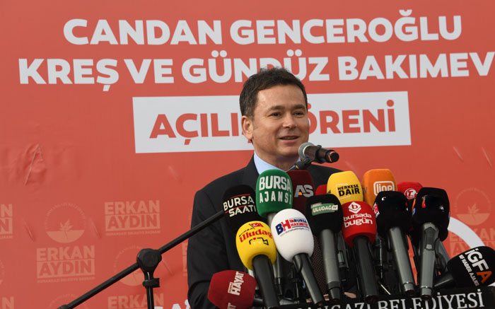 Her dokundukları projede geri dönüşümün çok olumlu izlerini aldıklarını belirten Başkan Aydın, “Örnek olarak Ayça Azak Kreşimizde 1 yıl içinde yüzde 25 ev kadınının iş hayatına atıldığını gördük. Tam gün eğitim verdiği için aileler oraya çocuklarını rahatlıkla sabahtan akşama kadar göndererek kendileri de ev ekonomisine ve aile hayatına destek oluyorlar. Buda bizim açımızdan çok önemli bir süreç Candan Genceroğlu Kreş ve Gündüz Bakım Evi, projesini söylediğimizde Genceroğlu ailesi hiç ikiletmeden 4 elle sarılarak hemen kabul ettiler. Bugün açılışını yaptığımız kreş benim diyen özel kreşten çok daha güzel yapılmış durumda ufacık bir masa ve sandalyesinin dahi sağlıklı malzemelerden seçilmesine özen gösterildi. Genceroğlu, ailesinin değerli babaları Candan Genceroğlu ismini ölümsüzleştireceği çok güzel bir eser kazandırdılar. Bu hizmetler hayırseverlerin desteği ve belediyelerimizin imkanlarıyla yapılıyor. Bu kreşler çağdaş Atatürkçü, vatanını, milletini ve ülkesini seven çocukları yetiştirmek için açılıyor. Bizim hedefimiz 5 yılın sonunda kreş sayasını 20’ye çıkartabilmek.” şeklinde konuştu.