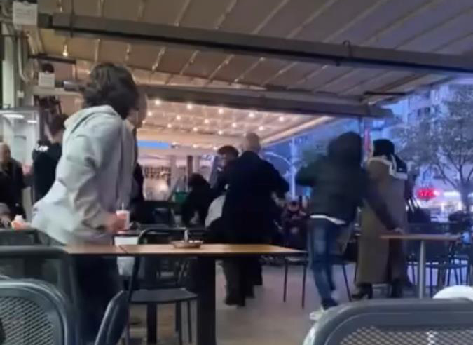 Olay, Bursa’nın Nilüfer ilçesi Özlüce Mahallesi'nde kafeteryada meydana geldi. Aralarında yan baktın tartışması çıkan gençler, kısa sürede yumruk yumruğa kavgaya tutuştu. Çevredekiler tarafları ayırmakta güçlük çekerken, o anlar bir başka vatandaş tarafından saniye saniye kaydedildi.