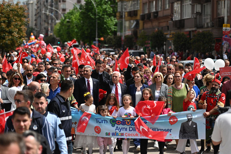 Ay Yıldızlı bayrağımız sonsuza dek dalgalansın diye ulusal egemenliğimizin perçinlendiği 23 Ulusal Egemenlik ve Çocuk Bayramı, tüm Türkiye’de olduğu gibi Bursa’da da büyük bir coşkuyla kutlandı. Bursa Büyükşehir Belediyesi tarafından ‘Tüm çocuklar aynı dilde gülümser’ teması ile hazırlanan ‘23 Nisan Çocuk Şenliği’nde çocuklar, dolu dolu program içeriğiyle unutulmaz bir gün geçirdi. 23 Nisan coşkusu, yüzlerce çocuk ve ailelerinin katılımıyla Altıparmak Caddesi’nden Merinos Parkı’na doğru yapılan kortej yürüyüşüyle başladı. Ellerindeki Türk bayraklarıyla marşlar söyleyerek ve şiirler okuyarak yürüyen çocuklara, Büyükşehir Belediye Başkanı Mustafa Bozbey ve eşi Seden Bozbey, CHP İl Başkanı Nihat Yeşiltaş ve Bursa Milletvekili Orhan Sarıbal da eşlik etti. Ulu önder Mustafa Kemal Atatürk’e minnet borçlu olduklarını söyleyen Başkan Bozbey, “23 Nisan Ulusal Egemenlik ve Çocuk Bayramı, dünyada çocuklara adanmış tek bayramdır. Bunu da çocuklara adayan Ulu Önderimiz Gazi Mustafa Kemal Atatürk’tür. Onun değerinin bilincindeyiz ve onun izindeyiz. Yaşasın Cumhuriyet, yaşasın 23 Nisan, yaşasın çocuklarımız” dedi.