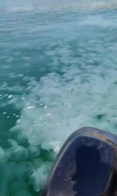 Bursa’nın Gemlik ilçesi Küçükkumla Mahallesi'ndeki sahil boyunda denizanası istilası yaşanıyor. On binlerce denizanası, sahili şeridini doldururken, o anlar tekneyle suda ilerleyen balıkçıkların kamerasına yansıdı. Bazı vatandaşlar denizanası artışının en önemli sebebinin deniz kirliliğinin yanı sıra kaçak avlanmalar olabileceğine dikkat çekti.