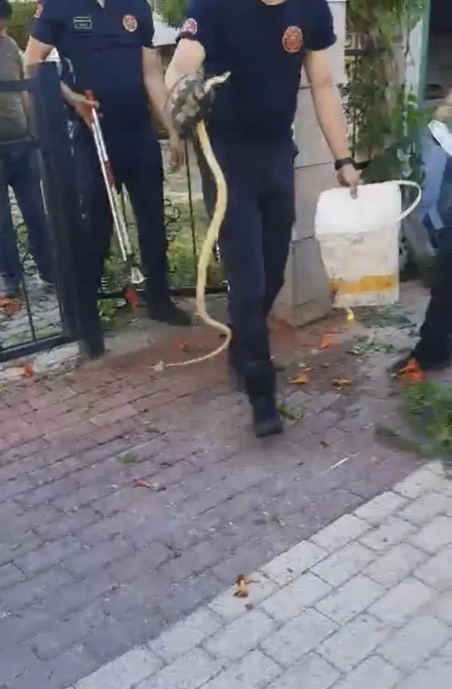 Merkez, Nilüfer ilçesi Ataevler Mahallesi üzerinde bulunan bir sitenin girişindeki bahçe kapısına dolanan yılan site sakinleri tarafından fark edildi. Endişeli vatandaşlar hemen itfaiye ekiplerini aradı. İhbar üzerine gelen ekipler, kapının üzerindeki sarmaşıklara dolanan yılanı çıkarmak için dakikalarca ter döktü.