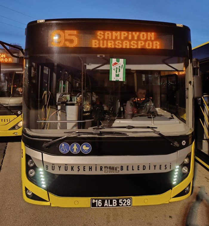 Bursa Büyükşehir Belediyesi’nin iştiraki Ulaşım Toplu Taşıma İşletmeciliği (BURULAŞ) Bursaspor'un şampiyonluğu sonrası tüm şehri Yeşil-Beyaza bürüdü.