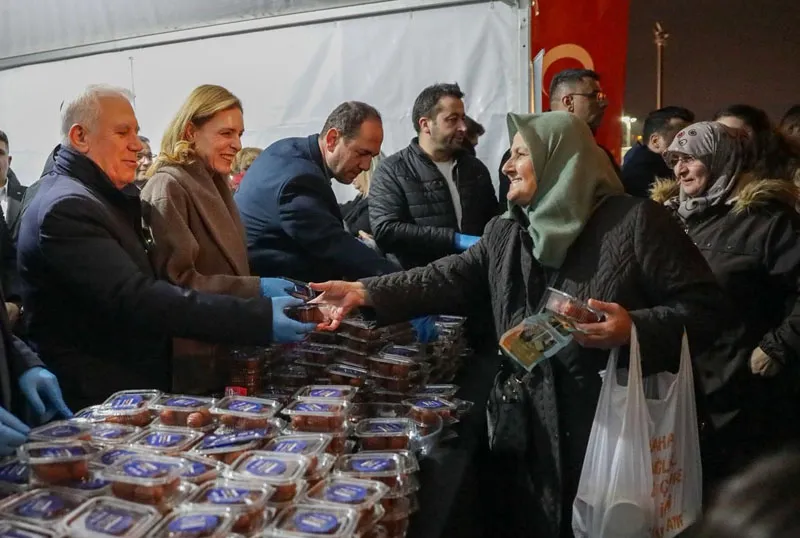 Bursa Büyükşehir Belediyesi, kent genelindeki 21 farklı camide Miraç Kandili dolayısıyla vatandaşlara tatlı ikram ederken, Bursa Büyükşehir Belediye Başkanı Mustafa Bozbey de eşi Seden Bozbey ile birlikte Emirsultan Cami’nde Bursalılarla bir araya geldi.