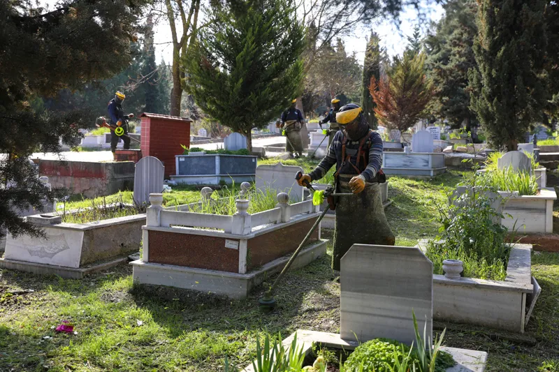 Sağlık İşleri Dairesi Başkanlığı’na bağlı Mezarlıklar Şube Müdürlüğü ekipleri, Bursa’daki 13 milyon 670 bin metrekarelik mezarlık alanında yabani ot temizliği, yolların düzenlenmesi, ilaçlanması ve genel bakım işlemlerini özveriyle sürdürüyor.