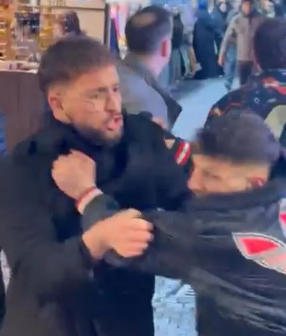 Bursa’daki Kapalı Çarşı civarında iki grup arasında çıkan kavga, adeta meydan muharebesine döndü. Yumruk ve tekmeler havada uçuştu. Tartışma çıkaranların başka bir şehirden geldiği belirtildi.
