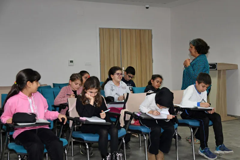 Küçük Yazarlar Atölyesi’nde çocuklara edebiyatı sevdirdiklerini söyleyen kurs eğitmeni Pelin Yılmaz, “Bu atölyede, daha önce temel eğitimi almış çocuklarla çalışıyoruz. Yani aslında onların bildiklerinin üzerine inşa ediyor, yazmayı daha derinlikli ve daha üretken bir noktaya taşıyoruz. Bugün küçük bir tekrar yaptık. Ardından çocuklar hemen yazmaya başladı. Konuların nasıl bulunacağını, bir hikayenin nereden doğduğunu birlikte konuştuk. Sürecin sonunda her çocuğumuzun elinde yayınlanabilir düzeyde tamamlanmış bir öykü olacak. Zaten birçoğunun önceki dönemlerden yazdığı öyküler var. Bu atölyede onları daha da geliştirmiş olacağız. Son aşamada çocuklarımız yazdıkları öyküleri resimleyecek. Tüm bu çalışmaları bir araya getirerek kitap çıkarmayı hedefliyoruz. Bizim için en büyük kazanım, çocukların kendi hikayelerini kalıcı bir esere dönüştürdüklerini görmek. Bu süreçte emeği geçen herkese teşekkür ediyorum” ifadelerine yer verdi.