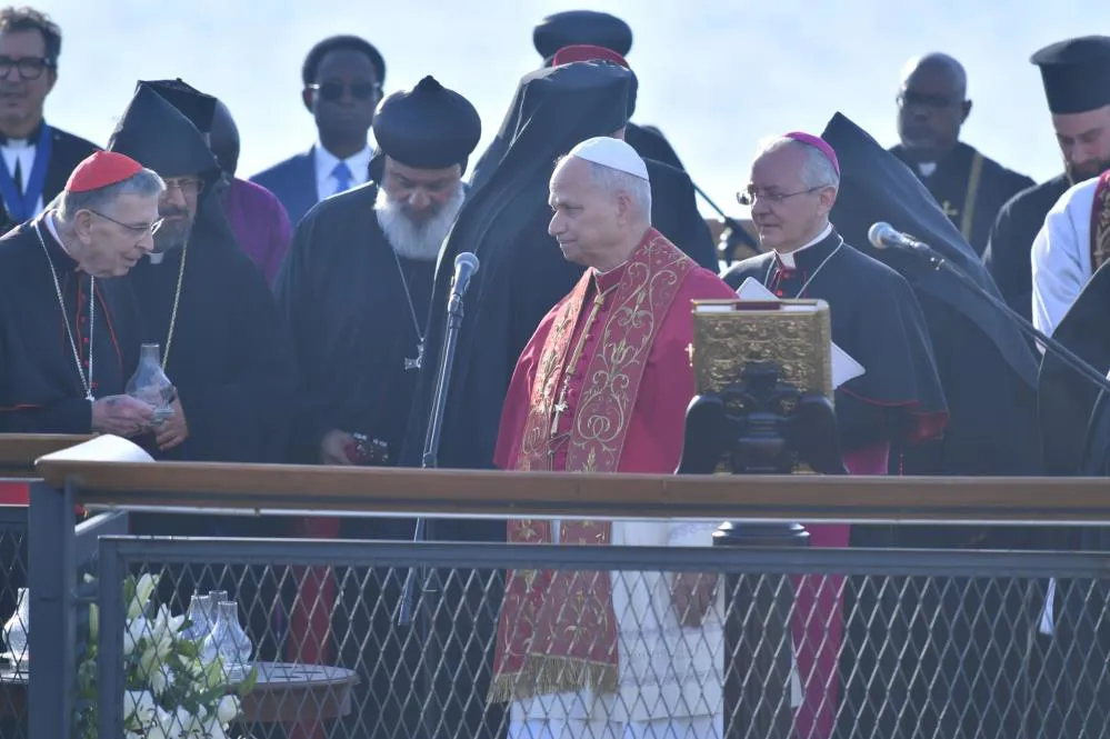 2500 civarında polis ve çok sayıda jandarmayla yoğun güvenlik önlemlerinin alındığı bazilikanın bulunduğu bölgeye gelen binlerce yerli ve yabancı turist ayini izledi, bazıları uzaktan eşlik etti. Papa'nın yönettiği ayin için bazilika yanına platform kuruldu. Leo'yu, Cumhurbaşkanı korumaları korudu.