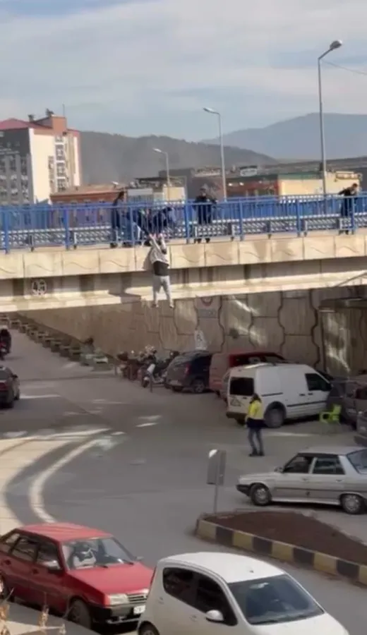 Olay, Karabük’ün Bayır Mahallesi Menderes Caddesi'nde meydana geldi. Edinilen bilgilere göre M.D. isimli şahıs, köprüye çıkarak atlamak istedi. Durumu fark eden vatandaşlar ile polis ekipleri şahsı ikna etmeye çalıştı. Bir süre ellerinden tutularak düşmesi engellenmeye çalışılan şahıs, montundan sıyrılarak yere düştü. O anlar cep telefonu kameralarına saniye saniye yansıdı.