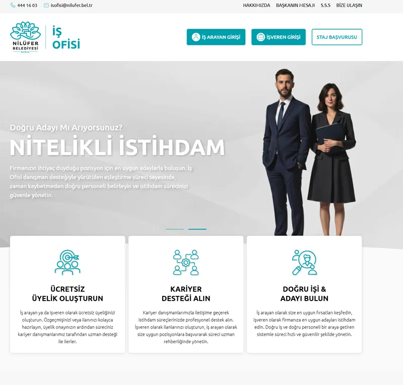 Nilüfer Belediyesi, kentteki istihdamı desteklemek ve insan kaynağını doğru fırsatlarla buluşturmak amacıyla İş Ofisi’nin yeni web sitesini hizmete sundu. İş arayan vatandaşlar ile nitelikli personel arayan firmaları dijital ortamda bir araya getiren platform, işe alım süreçlerine büyük bir hız ve kolaylık kazandıracak. Ücretsiz üyelik imkanı sunan site üzerinden kullanıcılar, anında profil oluşturarak, kariyer destek hizmetlerinden faydalanabilecek ve iş rehberi içeriklerine kolayca ulaşabilecek.