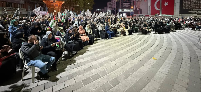 Meydana gelen bazı yurttaşlar, Kur’an okudukları görüldü. Filistin bayraklarıyla İsrail’e olan öfkelerini dile getirenler, Şehreküstü Meydanı’nda beklemeye devam ediyor.