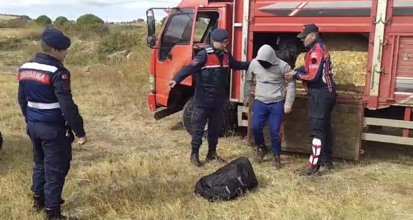 Çanakkale İl Jandarma Komutanlığı ekipleri kaçaklara yönelik uygulamalarına devam ediyor. İl Jandarma Komutanlığı ekiplerince, Eceabat'ın Küçükanafartalar köyü Kireçtepe Jandarma Şehitliği mevkiinde düzenlenen operasyonda 22 FL 696 plakalı kamyon durduruldu. Kamyon kasasında saman balyaları arasına gizlenmiş ve Yunanistan’a gitmek isteyen 7’si kadın, 9’u erkek, 5’i erkek çocuk, 5’i kız çocuk olmak üzere 26’sı Afganistan ve 1’i İran uyruklu toplam 27 kaçak göçmen yakalandı.