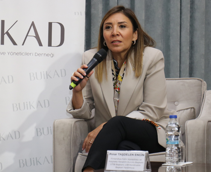 Program, açılış konuşmasının ardından, moderatörlüğünü BUİKAD Başkanı Şeyda Şençayır’ın üstlendiği söyleşide, Finlandiya Fahri Konsolosu Pınar Taşdelen Engin, “Kadınlar sınırlarını zorlayarak çalışıyorlar. Kadın artık bir istatistikten çıkmalı ve erkeklerin kadınlara yer açması gerekiyor. Şirketleri, şehirleri ve ülkeleri yönetme konusunda kadın sayısı artırılmalı” dedi.