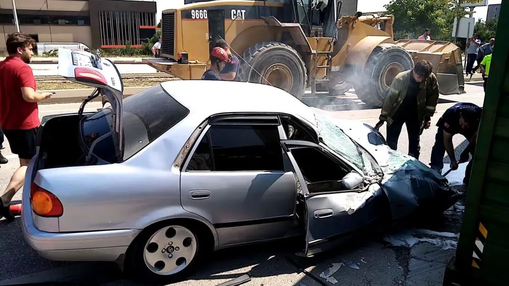 Kazanın böylesi! TIR otomobilin üzerine devrildi; Bir aile...