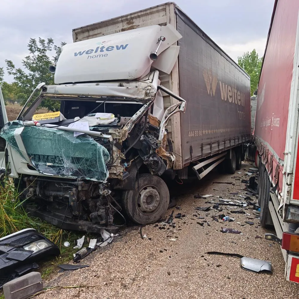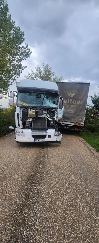 Bursa'nın İnegöl İlçesi’nde kural hatası kazaya sebep oldu. 2 kamyon daralan yolda kafa kafaya çarpıştı; 1 sürücü yaralandı.