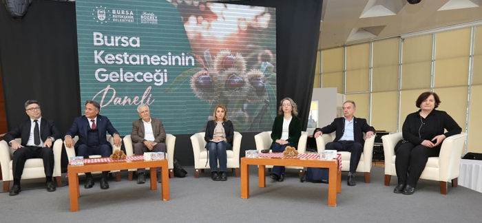 Bursa Büyükşehir Belediyesi, kentin simge ürünlerinden kestanenin topraktan sofraya uzanan yolculuğunda yaşanan sorunları konuşmak, bilimsel ve teknik ihtiyaçları değerlendirmek ve ürünü geleceğe en sağlıklı şekilde taşıyacak adımları belirlemek amacıyla ‘Bursa Kestanesinin Geleceği’ panelini düzenledi. Atatürk Kültür Merkezi Merinos Yerleşkesi’ndeki programa, Bursa Büyükşehir Belediye Başkanı Mustafa Bozbey’in yanı sıra Büyükşehir Belediyesi yöneticileri, akademisyenler, kamu kurumlarının temsilcileri, üreticiler ve sektör paydaşları katıldı. Program öncesinde, katılımcılara pişmiş kestane, kestaneli sarma, kestaneli kurabiye, kestane şurubunda kabak tatlısı, kestane şekeri, kestane çorbası gibi lezzetler ikram edildi.