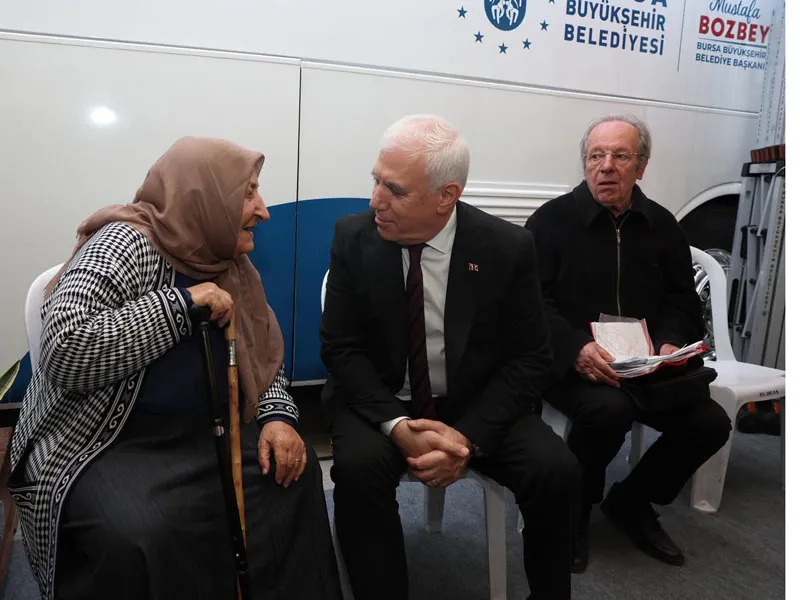 Başkan Bozbey, ziyaretlerin ardından 30 Ağustos Zafer Mahallesi’nde vatandaşların talep ve önerilerini dinledi. Alanda bulunan Sağlık Otobüsü vatandaşların muayenesini ücretsiz yaparken, iş arayanlar da Bursa İş Ofisi standında forum doldurma imkanı buldu.