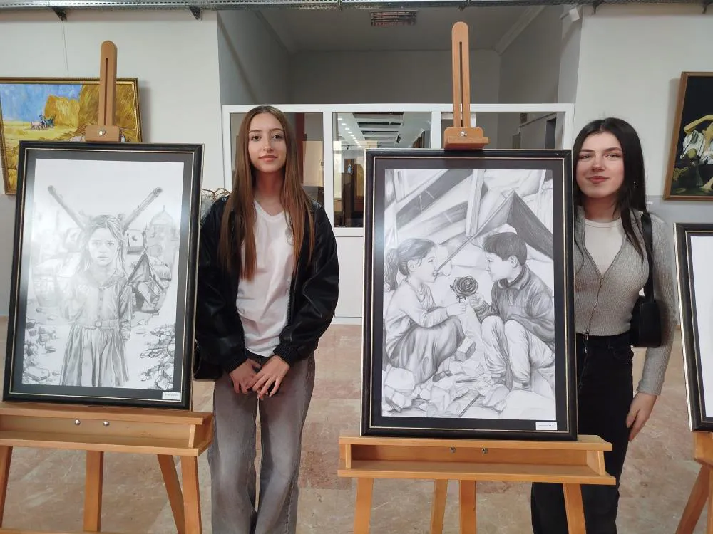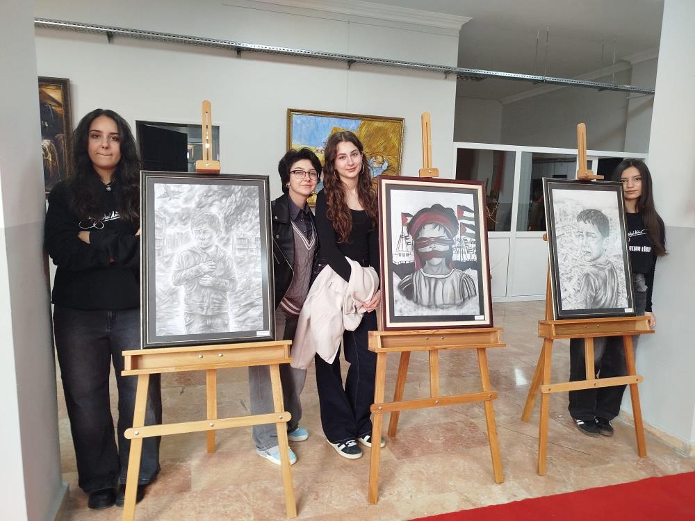 Bursa Zeki Müren Güzel Sanatlar Lisesi, öğrencilerinin toplumsal duyarlılığını ortaya koyan anlamlı bir sergiye ev sahipliği yaptı. Sergide; 9, 10 ve 11. sınıf öğrencileri tarafından hazırlanan toplam 27 eser, 'Filistinli Çocuklar' temasıyla sanatseverlerin beğenisine sunuldu. Filistin’de yıllardır süren saldırılar nedeniyle en büyük bedeli ödeyen çocukların yaşadığı dramın, sanatın diliyle güçlü biçimde ifade edildiği sergide, yıkıntılar arasındaki masum bakışlar, savaşın gölgesinde büyümeye zorlanan minik hayatlar ve yokluğun içindeki umut parçacıkları, eserlerdeki çarpıcı kompozisyonlarla hayat buldu. Dijital çalışmaların modern üslubu ile karakalem eserlerin yalın ve derin anlatımı, temanın etkisini daha da güçlendirdi.