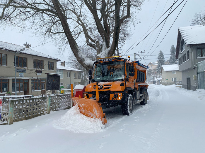 Bursa’da, özellikle yüksek kesimlerde etkili olan kar yağışı ile birlikte harekete geçen Osmangazi Belediyesi, başta Uludağ yamaçları olmak üzere kırsal mahallelerde kar küreme ve tuzlama çalışmaları yaptı. Meteorolojinin uyarıları doğrultusunda 60 personel, 10 iş makinası (greyder, loder, jcb), 5 tuzlama ve küreme aracı, 2 kar küreme ve tuz serpme aracı ile birlikte 24 saat kesintisiz hizmet yapan Osmangazi Belediyesi, ulaşımın aksamaması için yoğun bir çalışma yürütüyor. Yiğitali, Kirazlı, Hüseyinalan, Süleymaniye, Mürseller, Bağlı, Soğukpınar, Büyükdeliller ve Küçükdeliller ile bölgedeki diğer köylerde çalışmalarını sürdüren belediye ekipleri, köylere giden ana yollar ile ara sokaklardaki karı, kar küreme araçları ve dozerler ile temizledi. Buzlanmaya karşı da önlem alan Osmangazi Belediyesi, tün ana ve ara yollara solüsyon döktü.