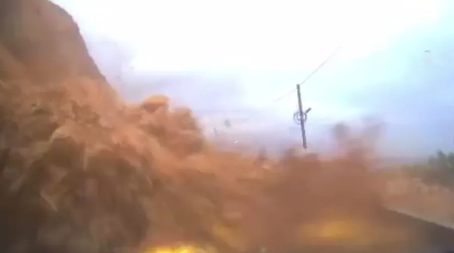 Öte yandan heyelan anı, olay sırasında toprak ve kaya parçalarının altında kalan aracın araç kamerasına yansıdı. Görüntülerde, otomobilin bir anda yuvarlanan toprak ve kaya parçalarının altında kaldığı, bu sırada hava yastıklarının açıldığı ve ön camının kırıldığı görüldü.