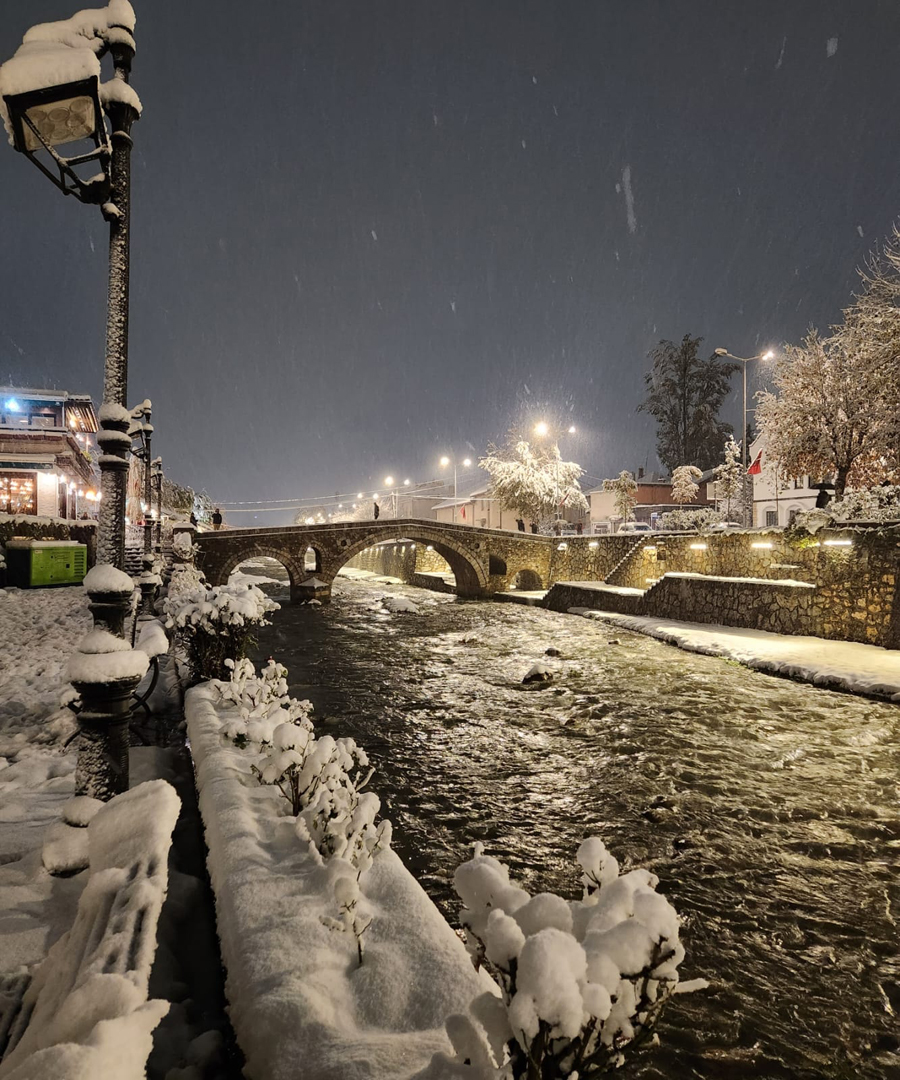 Kar yağışıyla çarşı meydanında bulunan Sinan Paşa Cami ve  Bistriça Nehri üzerinde gerdanlık gibi duran Taş Köprü,  turistlere ve fotoğraf sanatçılarına inanılmaz enstantaneler sundu.