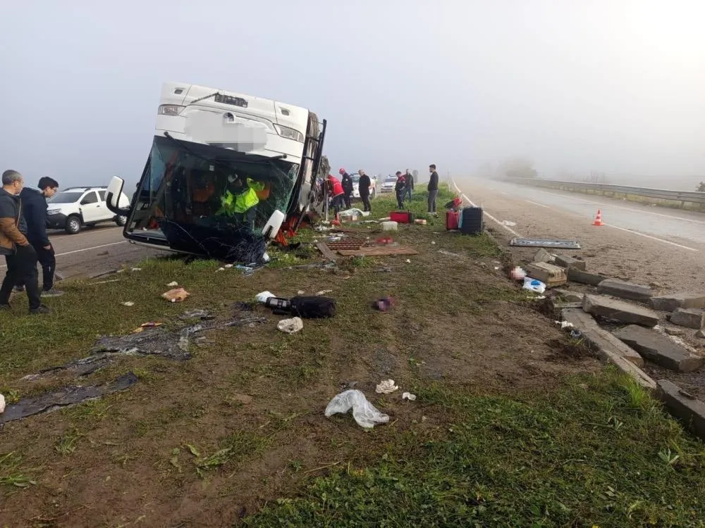 Ramazan Bayramı tatilini yakınlarının yanında geçirmek isteyenleri taşıyan yolcu otobüsü refüje çarparak devrildi. Adana’nın Kozan ilçesindeki korkunç kazada 2 kişi hayatını kaybetti, 17 yolcu da yaralandı.