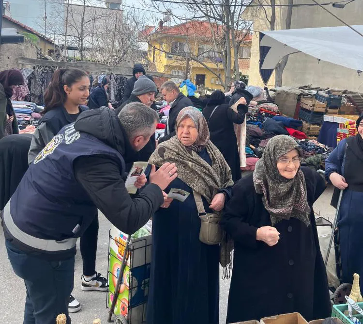 İlçe halkının yoğun olarak bulunduğu pazar yerinde alışveriş yapan vatandaşlar ve esnafla tek tek görüşen ekipler, dolandırıcılık yöntemleri hakkında uyarılarda bulundu. Çalışma kapsamında vatandaşlara 'dolandırıcılık' konulu bilgilendirici broşürler de dağıtıldı.