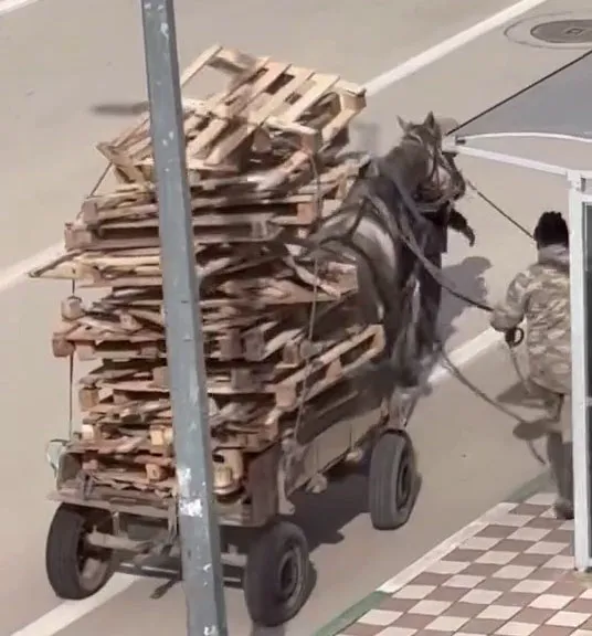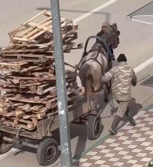 Bursa’nın Karacabey ilçesinde kimliği henüz öğrenilemeyen bir kişi, at arabasına kat kat palet yükledi. Aşırı yük nedeniyle yükün ağırlığı altında güçlükle ilerleyen atın dengesini sağlamakta zorlandığı anlar, çevrede bulunan bir vatandaş tarafından cep telefonu kamerasıyla kaydedildi.
