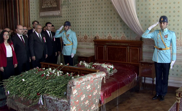 Milyonlar, siren seslerinin ardından saat 09.05'te saygı duruşuna geçti. Duygusal anlar yaşandı. Atatürk'ün son nefesini verdiği Dolmabahçe Sarayı doldu taştı.