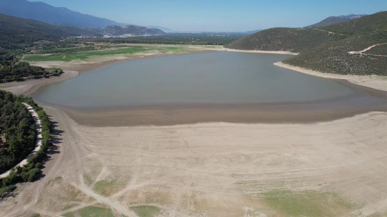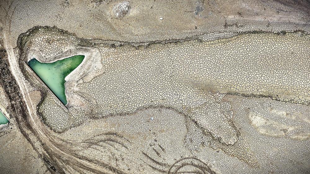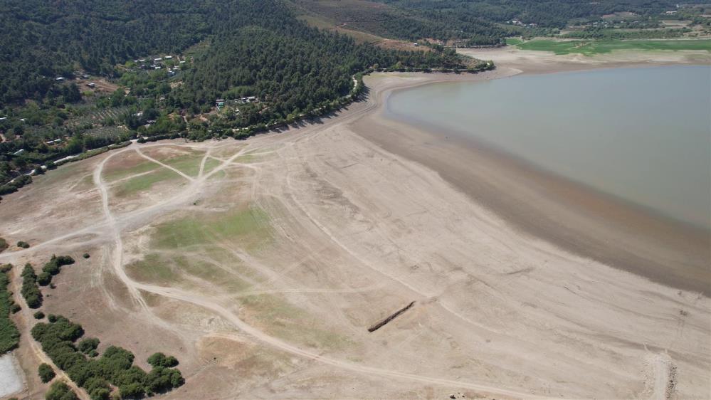 Dronla kaydedilen görüntülerde, iki baraj göletinde de suyun büyük oranda çekildiği, bazı noktalarda çekilmenin 300 metreyi bulduğu ve zeminde derin çatlakların oluştuğu görülüyor.