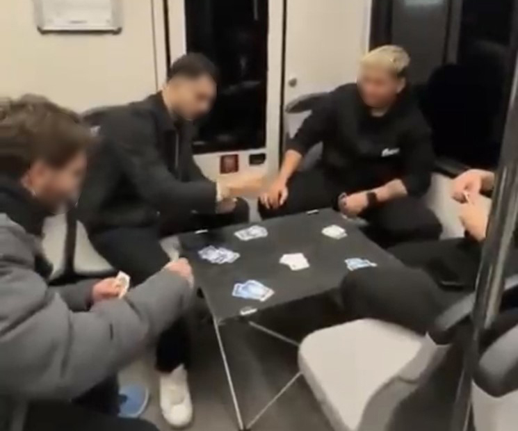 Bursa'da metro içerisinde masa kurup kağıt oyunu oynayan gençler, diğer yolcuların hayret dolu bakışlarına neden oldu. Yolculuk sırasında alanın ortasına oturdukları küçük masayı açan grup, kimseye aldırış etmeden kısa sürede kartlarını çıkararak oyuna başladı. O anları gören vatandaşlar hayret dolu bakışlarla izlerken, bazı yolcular cep telefonlarıyla ilginç anları kaydetti. Görüntüler sosyal medyada da dikkat çekti.