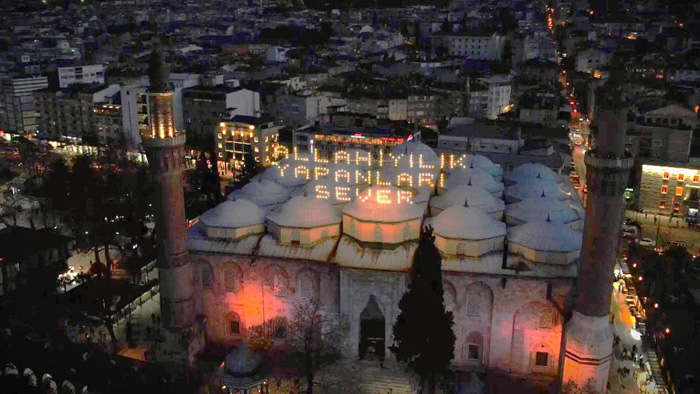 Osmanlı'dan bugüne kadar uzanan mahya asma geleneği, bu yıl da sürdürüldü. İstanbul'daki camilerde mahya asma işlemleri tamamlandıktan Bursa'ya gelen ekip, hummalı bir çalışma içerisine girdi. Kültür ve Turizm Bakanlığı Vakıflar Genel Müdürlüğü İstanbul'daki mahya atölyesinde hazırlanarak Bursa'ya getirilen ‘Allah iyilik yapanları sever' ustalarca caminin minareleri arasına asılmaya başlandı.