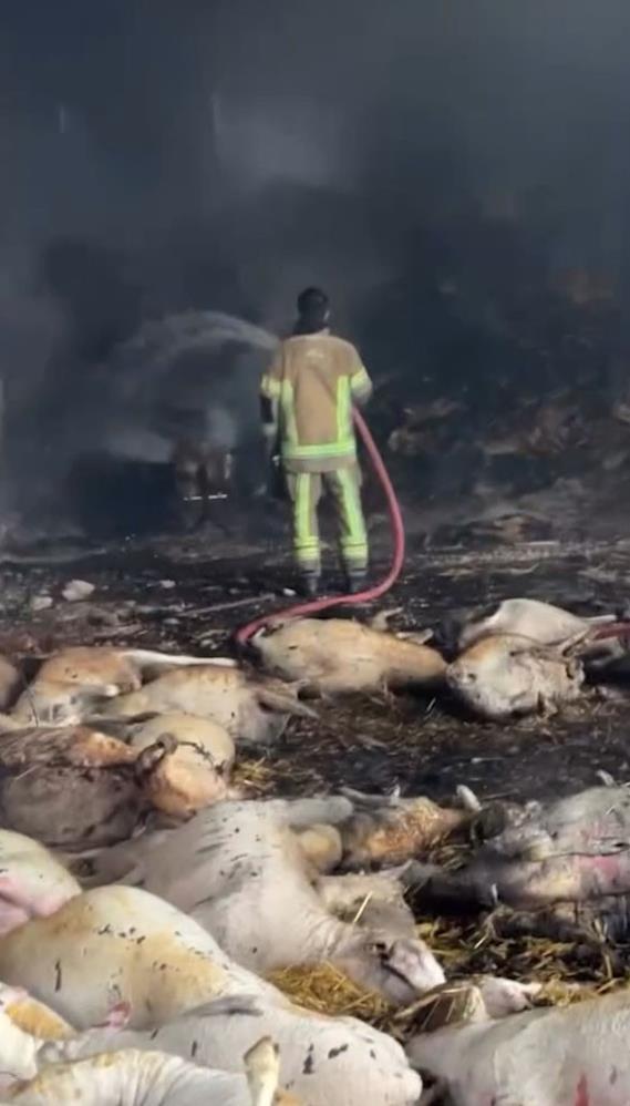 Ekiplerin uzun süren müdahalesiyle yangın kontrol altına alınırken, içeride bulunan 120 kuzu, 50 koyun bağıra bağıra can verdi.