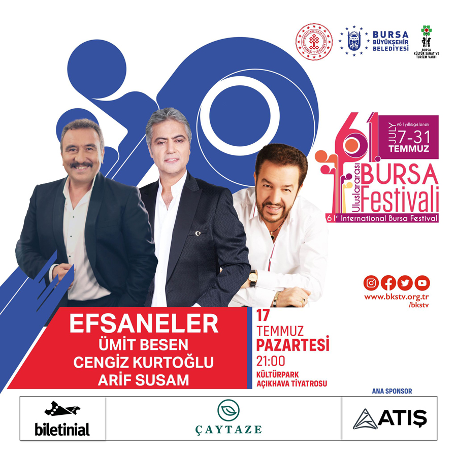 Bursa Kültür Sanat ve Turizm Vakfı Başkanı Sadi Etkeser de, “Müzeyyen Senar ve Zeki Müren’in eşsiz sesleriyle başlayan, kuşaktan kuşağa 61 yıldır devam bu öykü, 7-31 Temmuz tarihleri arasında şehrimizi aydınlatmaya devam edecek. Piyasa fiyatlarının yarısı belki daha azı olarak festival biletleri 100 TL ile 400 TL arasında satışa çıkacak. Kar amacı gütmeyen vakfımızın, kültür sanat faaliyetlerine katkılarını artırmak amacıyla her zaman yanımızda olan ve bize güç katan Büyükşehir Belediyemize, Kültür Turizm Bakanlığımıza ve her zaman bize destek veren sponsorlarımıza teşekkür ediyorum” dedi.