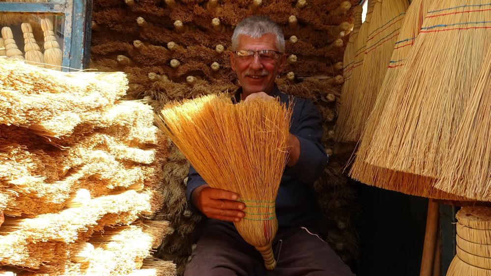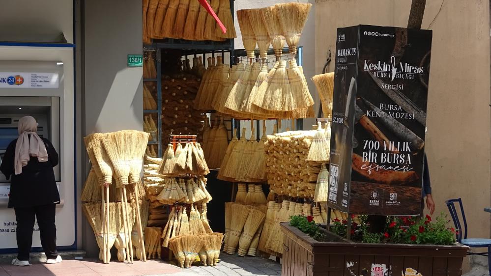 Bursa'da babadan kalma çalı süpürgesi mesleğini yıllardır çarşının merkezinde sürdüren Yüksel Başak, etrafında birçok teknolojik süpürge mağazası olsa müşterisi hiç bitmiyor.