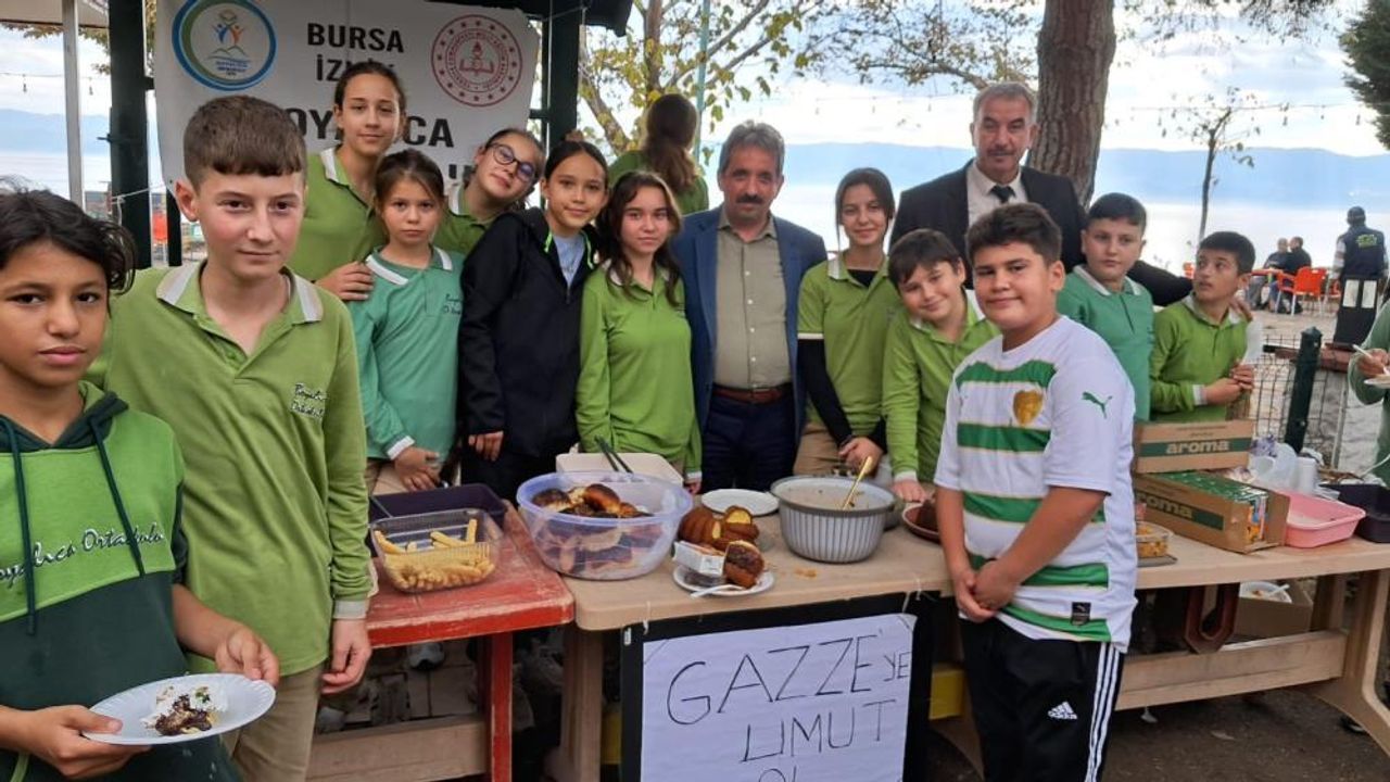 Bursa’nın İznik İlçesi Boyalıca’daki okul bahçesinde gerçekleştirilen etkinlikte öğrenciler, evlerinde aileleriyle birlikte yaptıkları börek, kek, kurabiye ve çeşitli yiyecekleri Gazze için satışa sundu. Etkinliğe öğretmenler, veliler ve mahalle sakinleri yoğun ilgi gösterdi.