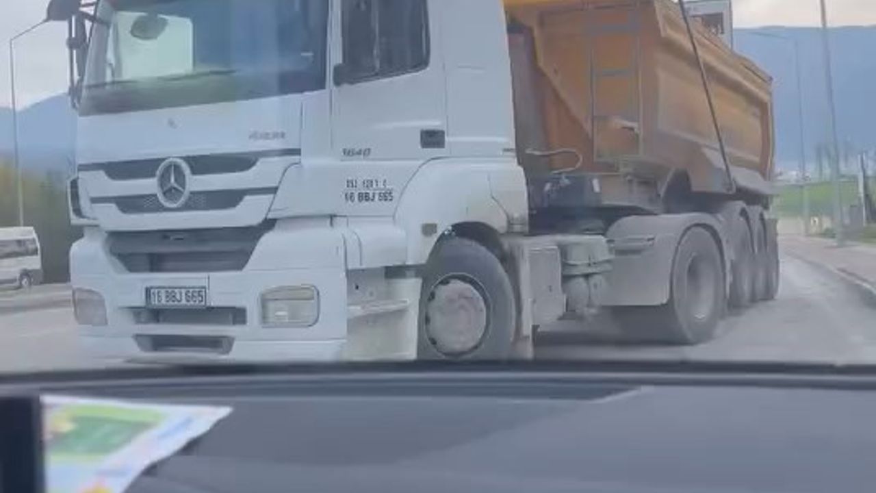 Şaşırtan olay, Bursa’nın Osmangazi ilçesi Demirtaş Mahallesi İnönü Caddesi'nde meydana geldi. Edinilen bilgiye göre, dönmesi gereken girişi kaçıran kamyon sürücüsü, ileriden dönerek kurallara uymak yerine ters şeritten girerek dönüşünü sağlamaya çalıştı.