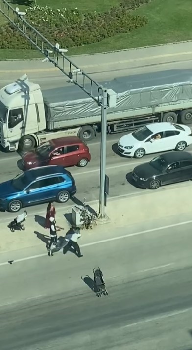 Tekme tokat kavga sırasında bebek arabalarından biri orta refüjden yola inip ilerlemeye başladı. Üzeri açılan bebek arabasında bebeğin olmadığı dilencilerin istismar yoluyla vatandaşları nasıl kandırdıkları bir kez daha gözler önüne serildi.