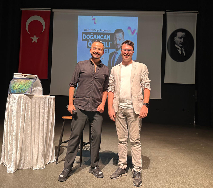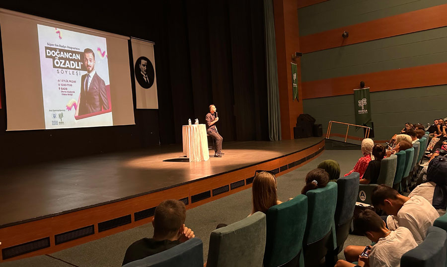 Radyoların enerjik sesi Doğancan Özadlı, geçtiğimiz pazar günü Bursa Akademik Odalar Birliği Yerleşkesi sahnesinde dinleyicileriyle buluştu. Bursa'da yaşayanların yoğun ilgi gösterdiği programda Doğancan, radyo kariyeri boyunca yaşadığı gülümseten anılarını paylaştı. Seyircilerin de interaktif katılımıyla gerçekleşen söyleşide, kahkahalar eksik olmazken, salonu dolduranlar keyifli bir pazar günü geçirdi.