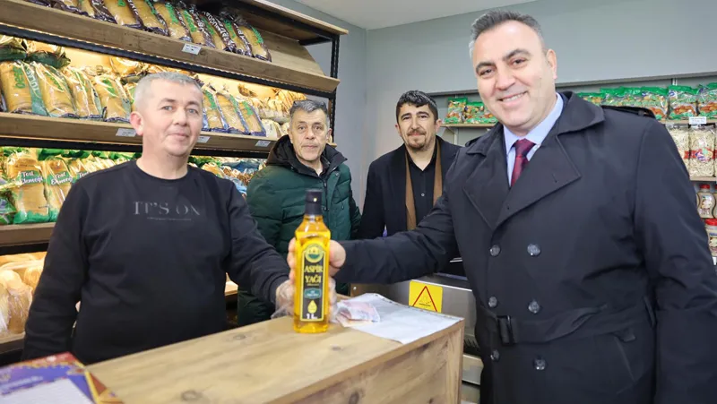 Konuşmaların ardından kurdele kesimiyle BESAŞ satış noktası hizmete açıldı. Başkanvekili Mehmet Aydın Saldız da çalışanlara hayırlı işler dileyip aspir yağı satın aldı.